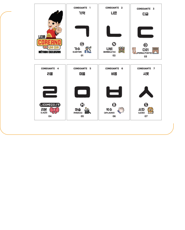 Por ser uma língua científica, o coreano se parece com um puzzle (quebra-cabeça). É como se você montasse as sílabas e palavras. Entendendo-se isso, foram criados cartões físicos que possibilitam a você montar as palavras coreanas